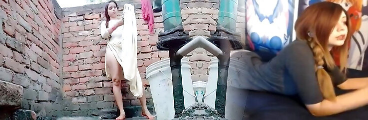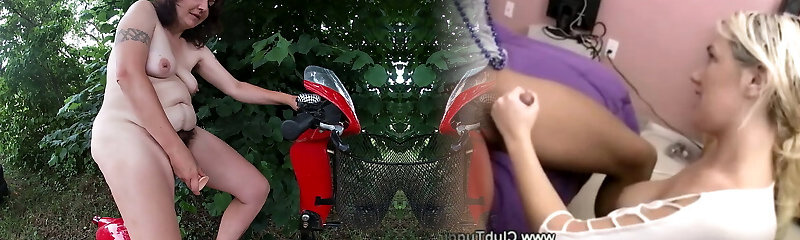 Hot Brunette Rides Scooter Naked