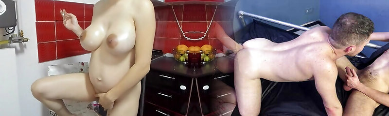 Horny Busty Brunette Gets Cummed On By Two Guys While Pregnant Outdoors