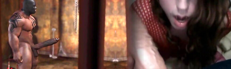 Horny Busty Tits Fucked by Two Sword-Wielding Orcs