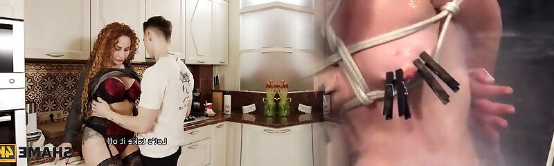 Naughty Mom Cooking Dinner: Busty Blonde Fucks Husband in Kitchen