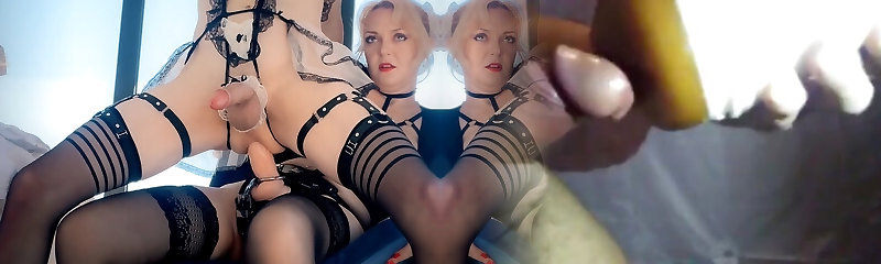Horny European Chick Dominates Naked Man With Her Black Strapon Harness!