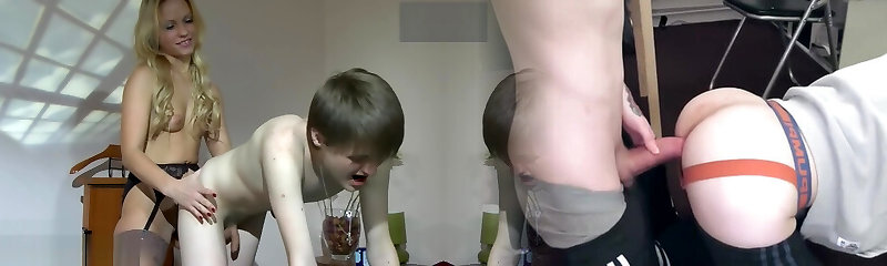Dominating Her Submissive Slave: Mistress Lucia's Strap-on Cock Fucks His Bare Butt