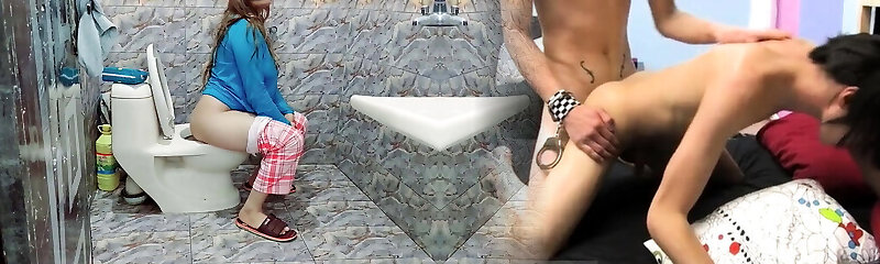 Getting Fucked by Two Horny Teens in the Bathroom with their Sex Toys