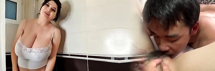 Mature mom rides stepson in shower