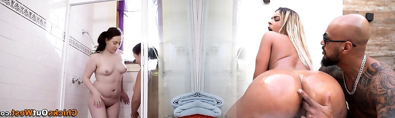 Horny Big Tit Chubby Busty Abigaill Morris and Brandy Fucked in the Shower by Their Cocks