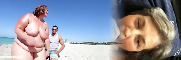 Sexy BBW Gets Cummed on by Three Dicks on the Beach