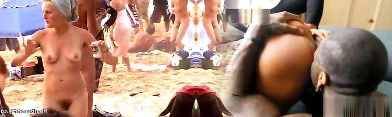 Beach slut spreads pussy for black cock