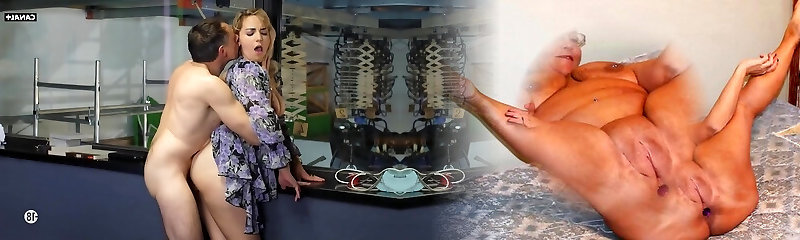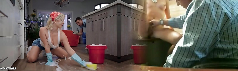Pink Dress Busty Blonde Fucks Hairy European Cock in Kitchen Doggy Style Sex