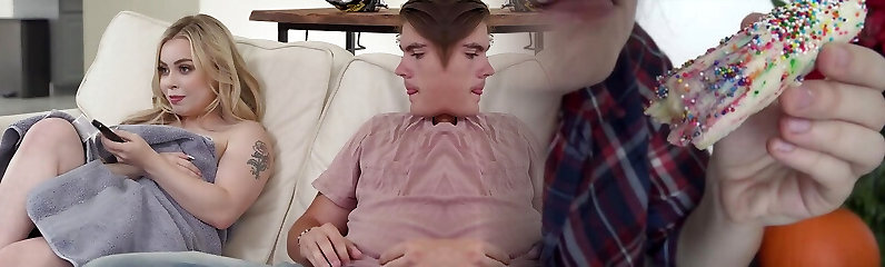 Blonde MILF Sucks Her Step Son's Cock Dry Then Gets Fucked Hard
