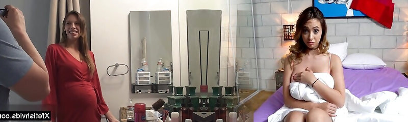 Pregnant Fetish Babe Gets Creamed in Red Dress Bathroom Scene!
