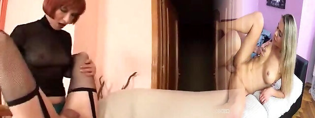 Sexy Crossdresser Fucks Busty Woman in Fishnet Pantyhose