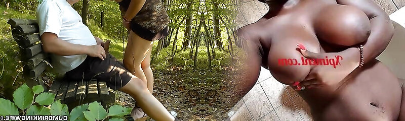 Fingering Her Pussy In Public: Horny Brunette MILF Gets Cumshot Outdoors!