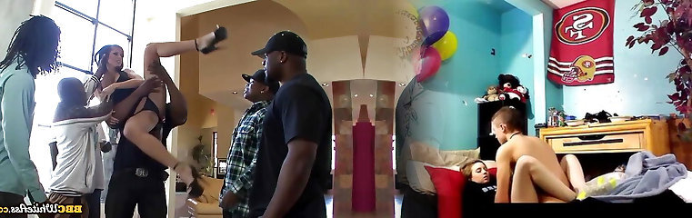 Interracial Groupsex Orgy with a Horny Teen and 6 BBC