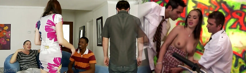 Triple Team Fucks Pink Dress Hottie