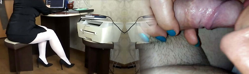 Secretary Teases Boss with Pantyhose and Handjob