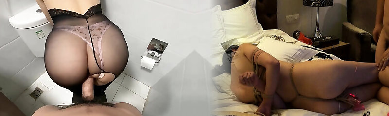 Horny Chinese Babe Sucks Cock while Wearing Ripped Crotch Pantyhose