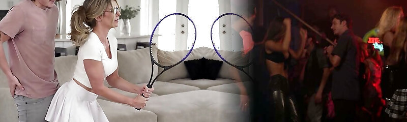 ) "Blonde Bombshell Busty MILF Cory Chase Gets Horny With Her StepSon Using Tennis Racket As A Dildo!