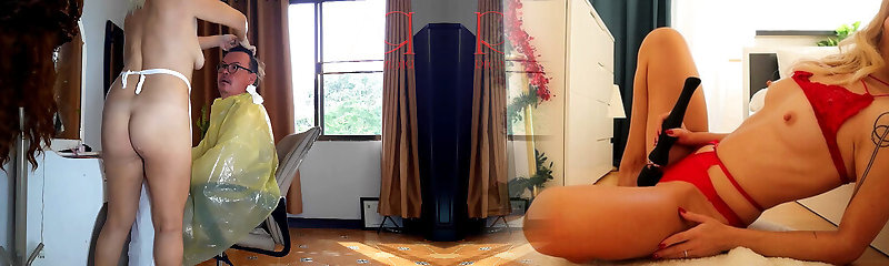 Titillating Trim: Luscious Lady Barber Seduces Client with her Apron!