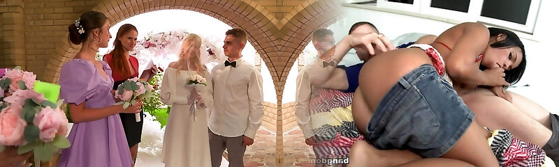 Sexy Bridesmaid Seduces The Groom While His Wife Is Getting Fucked By The Best Man!